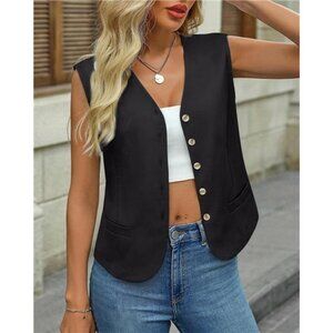 Women's Summer Sleeveless Blazer Vest Button Down Black