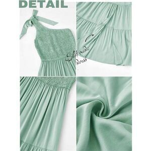 🧿Feature: one shoulder, sleeveless, tie knot one shoulder, stretchy smocked bodice, side split, high waist, flowy a-line tiered ruffle dress, solid color, summer boho style.