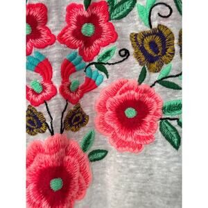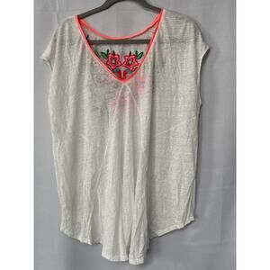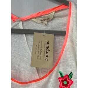 Women’s Sundance Colored Floral Embroidered White Backless Sheer T-Shirt Sz XL