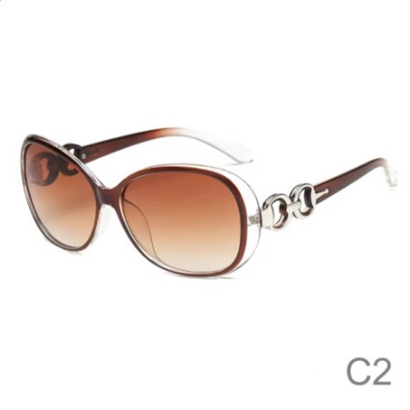 Women's Sunglasses Amber Brown Silver Luxury Oval Stylish Trendy UV400