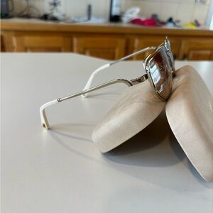 Elevate your style with women's sunglasses. Featuring a sleek silver frame and chic tan lenses, these sunglasses offer both elegance and protection. Perfect for any occasion.