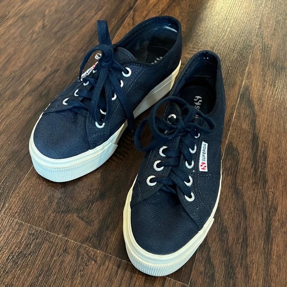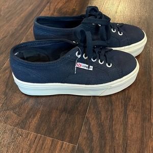 Women's Superga 2790 ACTOW Flatform Sneaker Navy Canvas/Cotton - Size 36