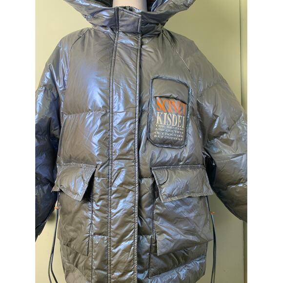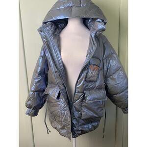 Women's Survival Metallic Down Jacket Puffer Starry Sky Gray Size S, Good Condition ,Snap On Button on the Packet is Little Loose, Survival Instructions Printed Inside