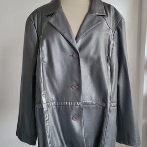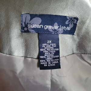Women's Susan Graver Faux Leather Silver Lined Metallic Jacket (Size: 2X)