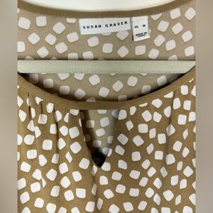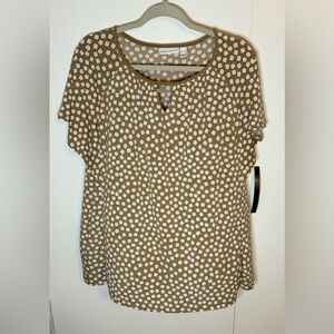 Women’s Susan Graver Liquid Knit Flutter Sleeve Camel & White Colored Top XL