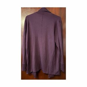 Soft plum athletic top from Athleta. Ribbed neckline detail. Versatile athleisure piece for workouts or casual wear.