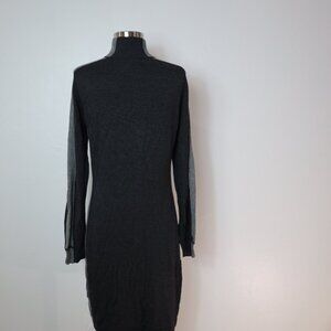 Womens Sweater Dress Gray Knitted Ribbed Cuff Winter Raglan Sleeve Quarter Zip.