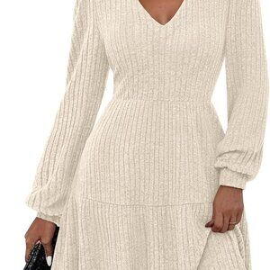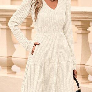 Womens Sweater Dress Knit Long Sleeve V Neck A Line Fall Mini Pockets