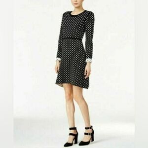 Women’s Sweater Dress L Maison Jules Jacquard Fit & Flare Square Polka dot cute