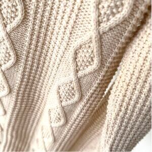 Classic cream/ivory knit with beautiful textured cable design throughout — soft, warm and perfect for fall layering, winter wear, or a neutral capsule wardrobe.