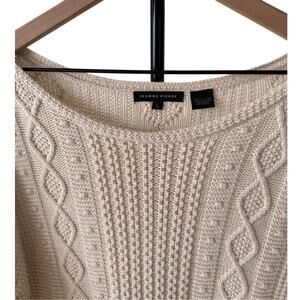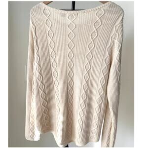 Women’s Sweater L Cream Cable Knit Textured Pullover Cozy-Jeanne Pierre Holiday