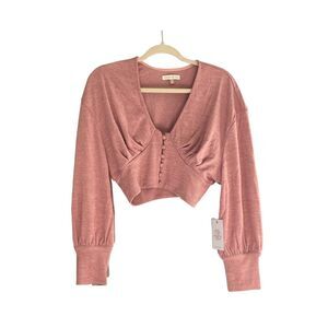 Women's Sweater Long Sleeve V Neck Button Front Knit Top Backyard Roses