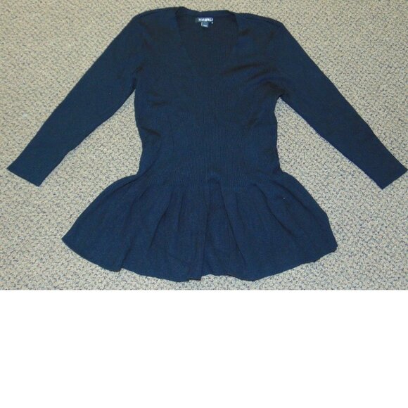 Womens Sweater Roz & Ali Black Large Petite Ribbed 3/4 Long Sleeve V-Neck LP