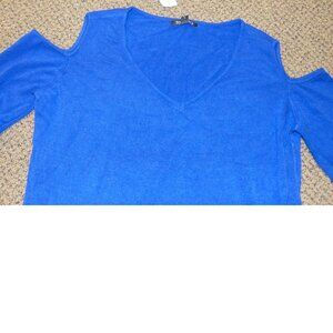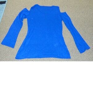 Womens Sweater Roz & Ali Large Blue Long Sleeve Cold Shoulder V-Neck Top