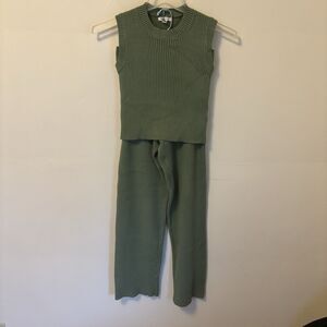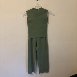Women's Sweater Set Tank Cropped Pants Thick Knit S Green Old Money Tea N Rose