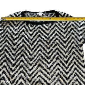 Womens Sweater Size Large Black White Fuzzy Zig Zag Casual Winter Wear