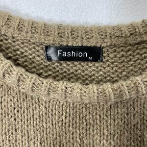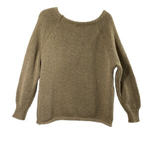 Womens Sweater Size Medium Brown Minimalist Academia Bottom Roll Edge Pullover
