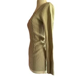 Womens Sweater Size Medium Tan Long Fitted Preppy Western Classic Minimalist
