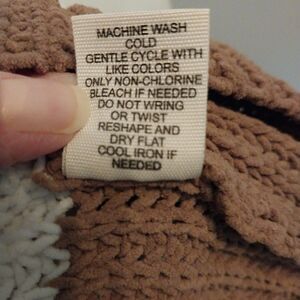 This women's sweater is a cozy and cute option for staying warm in style. The sweater is a size medium with an oversized fit, featuring a cropped length and chunky knit material in a colorful striped pattern. It has a classic crew neckline and long sleeves, making it perfect for cooler weather. The breathable 100% polyester fabric adds to the comfort of this pullover sweater, which is both trendy and comfy for everyday wear.