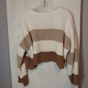 Women's Sweater Sz M Cropped Colorblock Striped Oversized Chunky Warm Cozy Cute