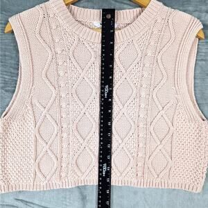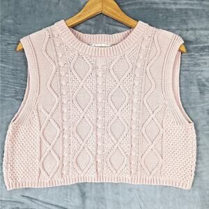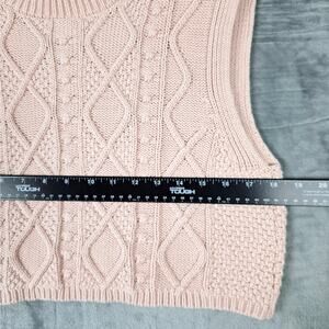 Womens Sweater Vest Large Pink Preppy Academia Cable Knit Bobble Boho Old Money