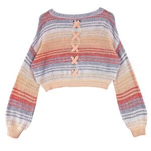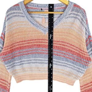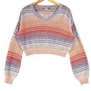 Womens Sweater XL Boho Rainbow Striped Kawaii Cropped Cottagecore Cozy Soft Girl