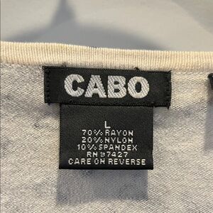 Upgrade your style with this Cabo women's sweater. Featuring a striking black and gray design, this top offers both comfort and fashion for any occasion. Amazingly soft, subtle bling, and stretches when you do. Like new, material is very well made. Size L