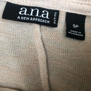 ANA High/low hem, long sleeve lightweight shimmer sweater. snake oatmeal color size Small Petite