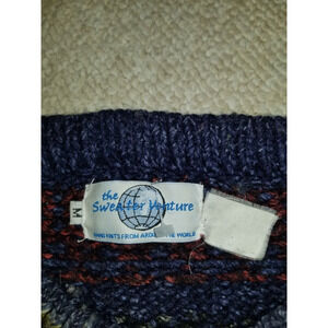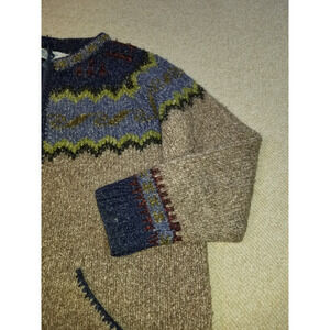 Women's Sweater-THE SWEATER VENTURE- Hand Knits from Around the World- -Lovely women's beige, blue, green, navy and burgundy Fair Isle wool blend full zip sweater. Sweater has a round neckline, full front zipper closure, two front pockets, long sleeves, and is not lined. Wool (NO Visible Fabric Tag). Marked Size: M (Underarm-to-Underarm= 22 inches, Length= 26 inches). Excellent condition. Non-smoking home. Thanks for looking.