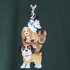 Womens Sweatshirt Large Fleece Dogs Granny Cottagecore Casual Embroidered Green