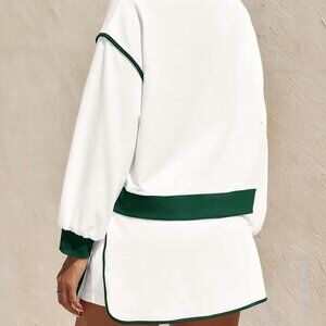 Thoughtful Design: This womens 3 piece set features a trendy color block drop shoulder sweatshirt and comfortable drawstring short with built-in shorts.The sweatshirt's collar and sleeve hems showcase a unique design that harmonizes with the edge of the shorts, creating a cohesive and stylish outfit for both casual outings and home wear.
