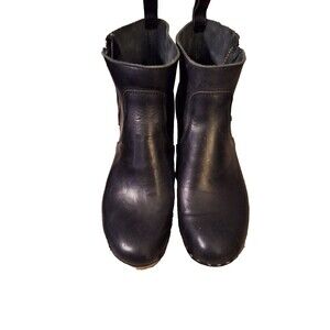 Womens Swedish Hasbeens Zip It Emy Clog Bootie Wood Heel, Black leathe Sz 7.5
