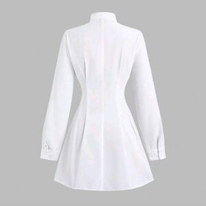 Women's Sweet Cute Bow Decor Minimalist Waisted Solid White Short Shirt Dress
