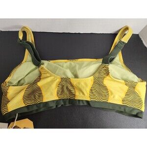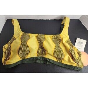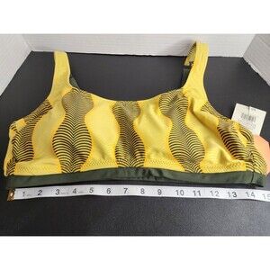 Women's Swim Halter Bralette Bikini Top Gold & Green Waves FE Noel Size XL (16)