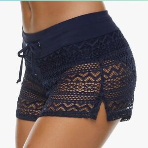 Women's Swim Shorts Lace Hollow Swimsuit Bottoms Mid Rise Board Shorts 2XL