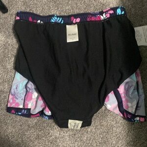 Women’s Swim shorts Navy blue with lighter blue and purple leaves, shades of pink flowers and white flowers. Sz 10. NWOT