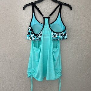 Women’s Swim Tankini top, Size Large, Blue, Animal Print