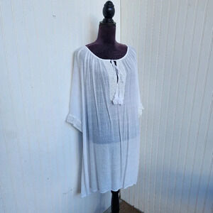 Women's Swimsuit Cover Up Dress White Crochet Lace Sheer 3/4 Sleeves Plus Sz 2XL