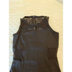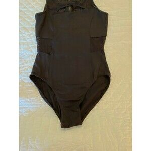 Womens Swimsuit One Piece Size ?? Large Black w/zipper & Lace Inserts Pool