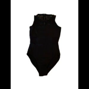 Womens Size ?? Large Black w/zipper Front & Lace Inserts Near shoulder and some around waist. Very pretty but still covers it all! G5
