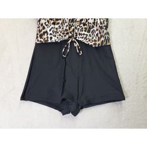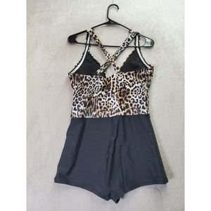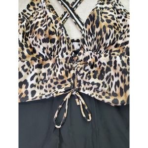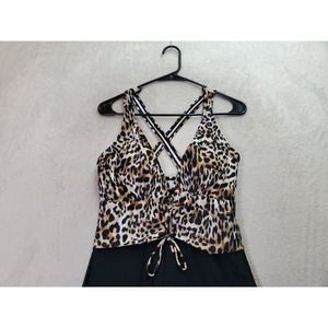 Womens Swimsuit Size Medium Multi Cheetah Print Sleeveless Cross Back Drawstring