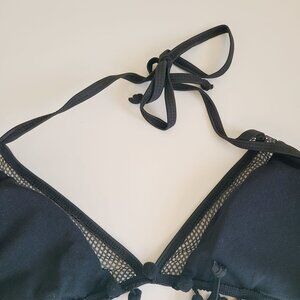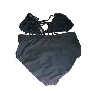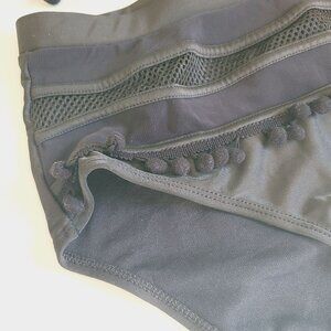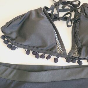 Women's Swimwear Black Bikini Set With Pom Pom Trim & Mesh Detail Size XL