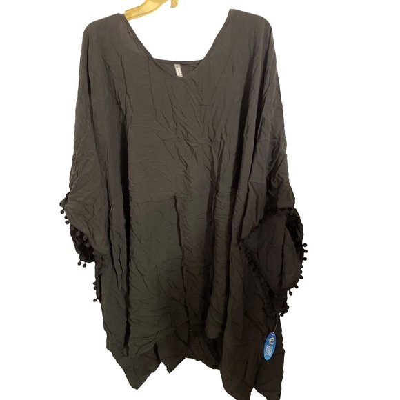 Womens Swimwear Pullover Swimsuit Cover Wave Zone Black Size 2X/3X