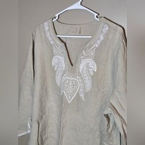 Women's Symple Boho Lagenlook 100% Linen Sequin V-Neck Tunic, Size 2X