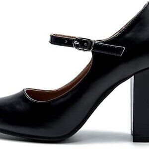 Features: Classic closed round toe pump with a secure in-step strap and a sturdy 3.54-inch block heel that offers support and a touch of height. Cushioned insole for all-day comfort, versatile for both casual and formal outings, from workdays to date nights or weddings. Pair these with skirts, jeans, or dresses for instantly polished looks.