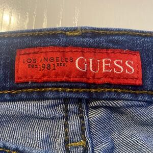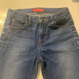 Women’s Sz 29 Guess jeans. These dark denim jeans have a raw hem and a wider hip area with slim legs. These are classy. A must have. Very lightweight. Great preowned condition. Smoke free home.