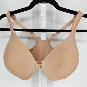 Womens Sz 42D Front Clasp T Shirt Bra Lightly Lined Solid beige