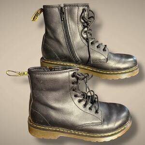 Women's Sz 5 DR. MARTENS 1460 Barely Worn Black Leather Side Zip Up Combat Boots