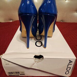 Women's Sz 6.5 Patent Blue 5" Platform Heels. Brand: Aldo. Style: Crixia. Brand new, never worn, in original box with original packaging. This shoe has a 1" platform so you can tower over the competition. Also, the size shows a 37 which is European measurements, but the US equivalent is a 6.5.