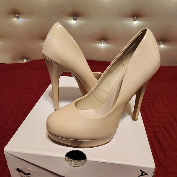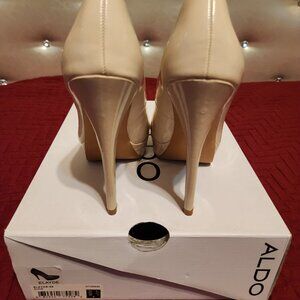Women's Sz 6.5 Patent Cream 5" Aldo Pump with 1" Platform rounded toe heels. Worn twice, like new, with original box & original packaging. You could even call this color Bone or Cream. Who doesn't love the quintessential Aldo rounded toe pump? I know every guy does. There is no damage, visible or non-visible, to these shoes. Seriously, they're like new.